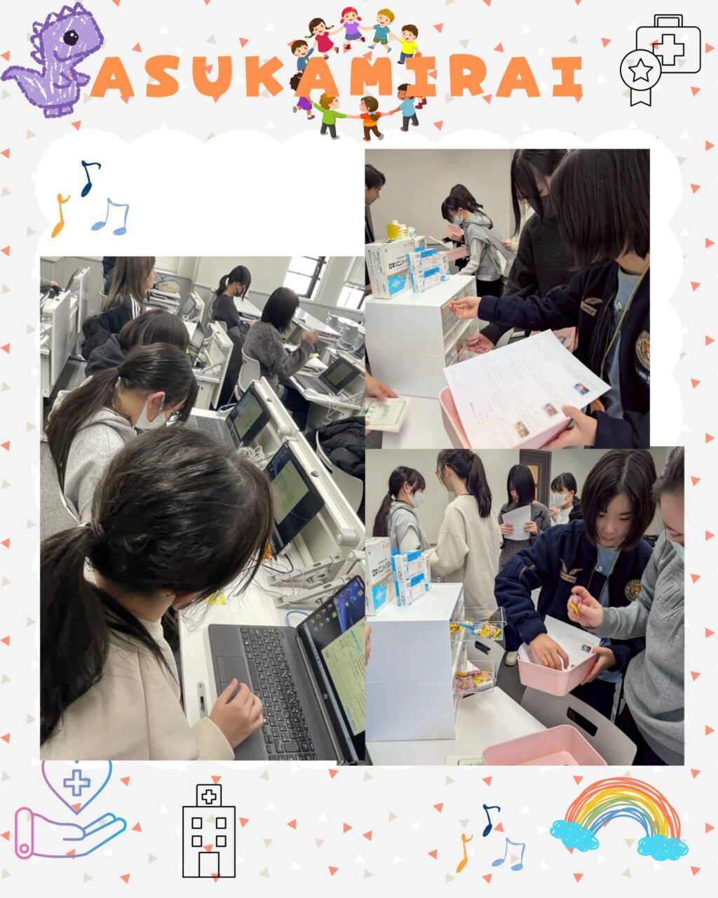パソコンを使った診療受付や、調剤薬局での薬の「ピッキング作業(処方箋に合わせて薬を準備する作業)」に挑戦!