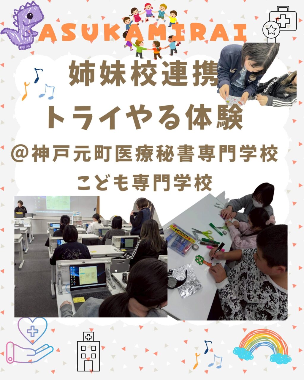 先日、姉妹校である「神戸元町医療秘書専門学校」と「神戸元町こども専門学校」へお仕事体験に行ってきました。