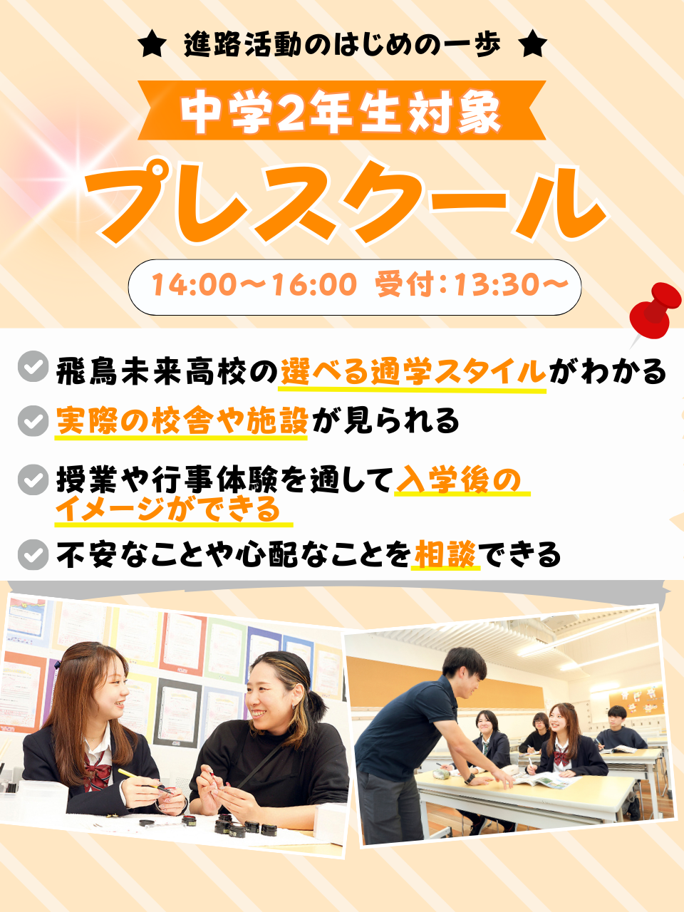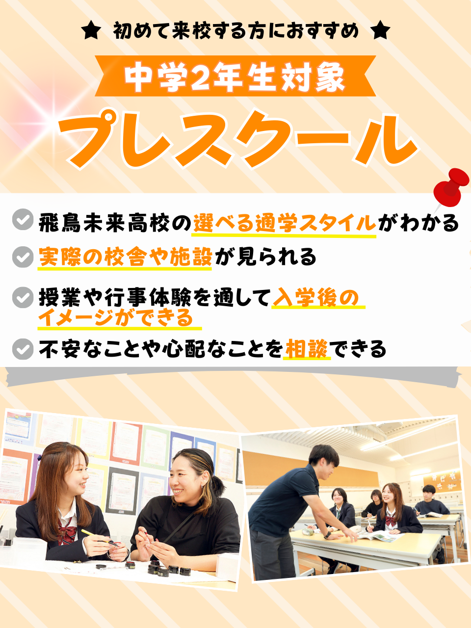 飛鳥未来高等学校(足立キャンパス)は自分らしく、夢に向かって羽ばたく力を身につける事が出来る単位制・通信制の高校です。