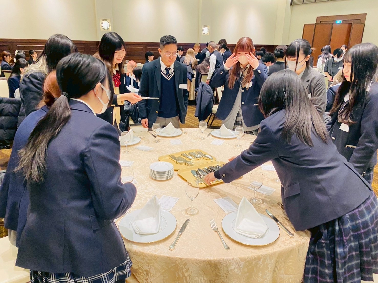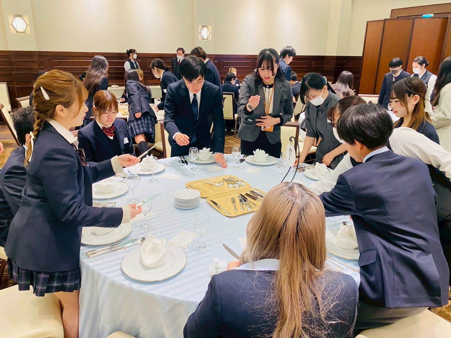 生徒は①ホテル内施設見学 ②テーブルセッティング ➂テーブルマナー講座を受講しました🥄