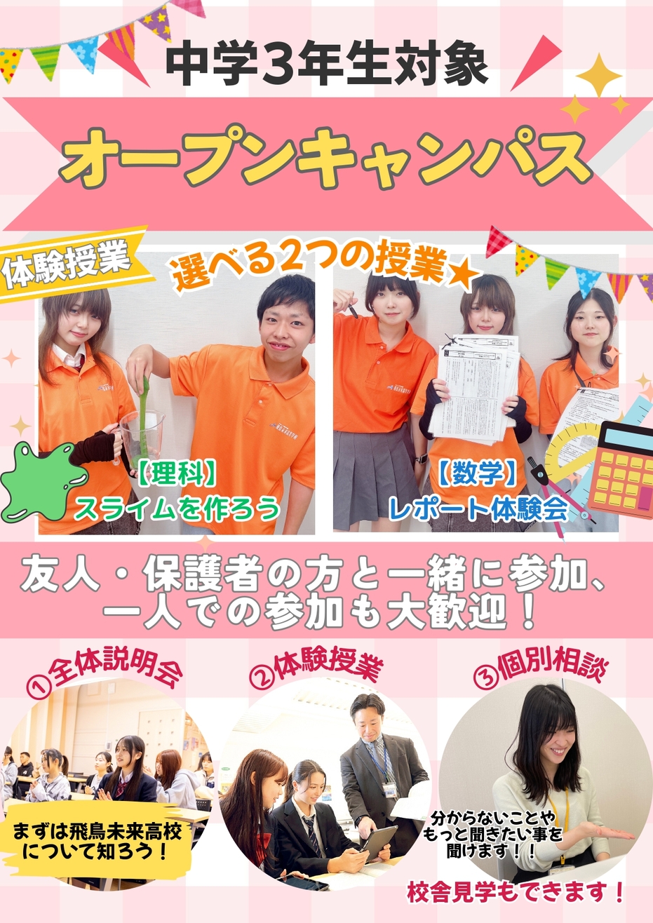 ※2回目以降のオープンキャンパスに参加される方は下にスケジュールを記載しております。