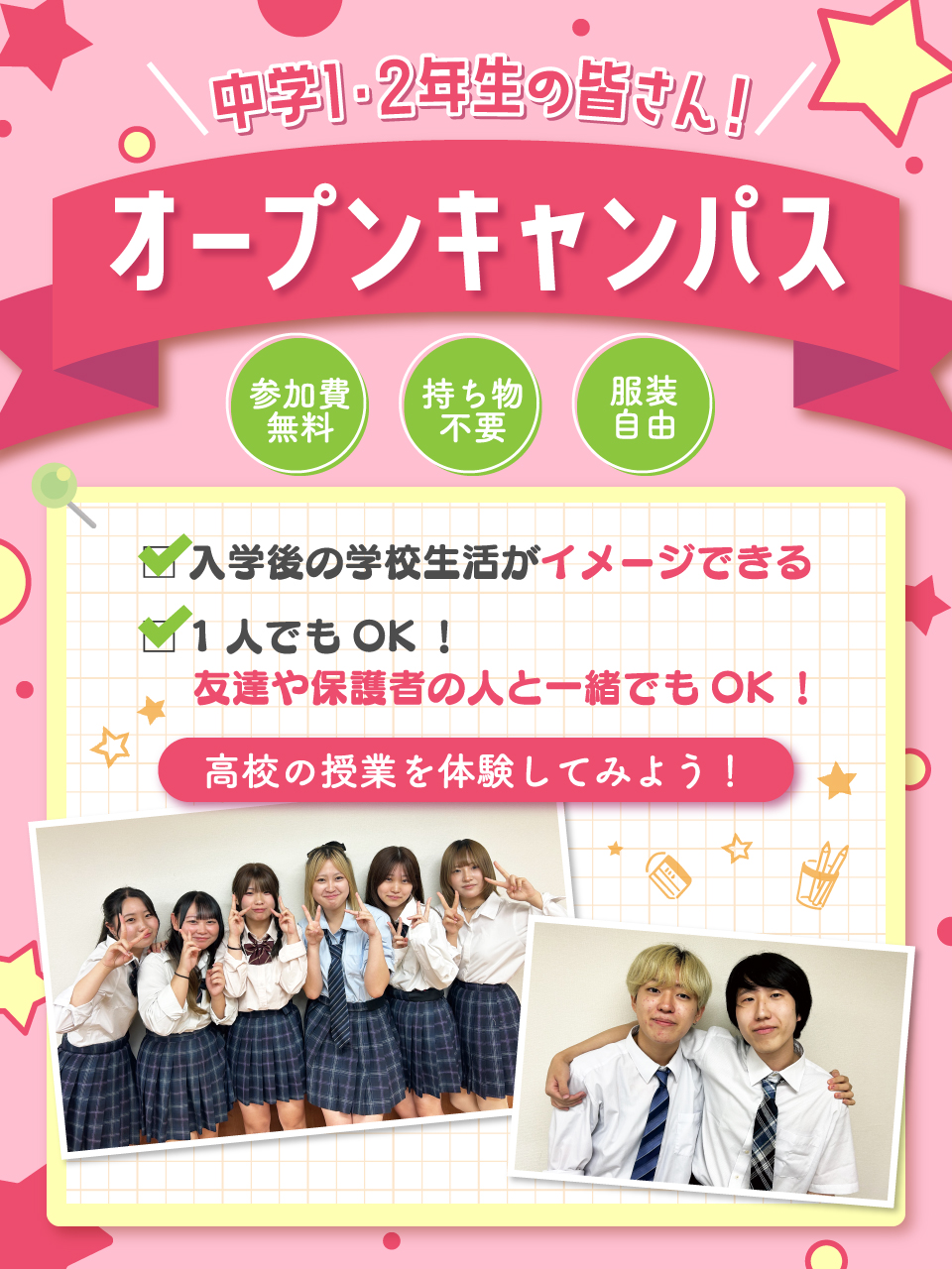 さらに登校時の服装は自由!自分らしく学びながら卒業を目指すことができます。