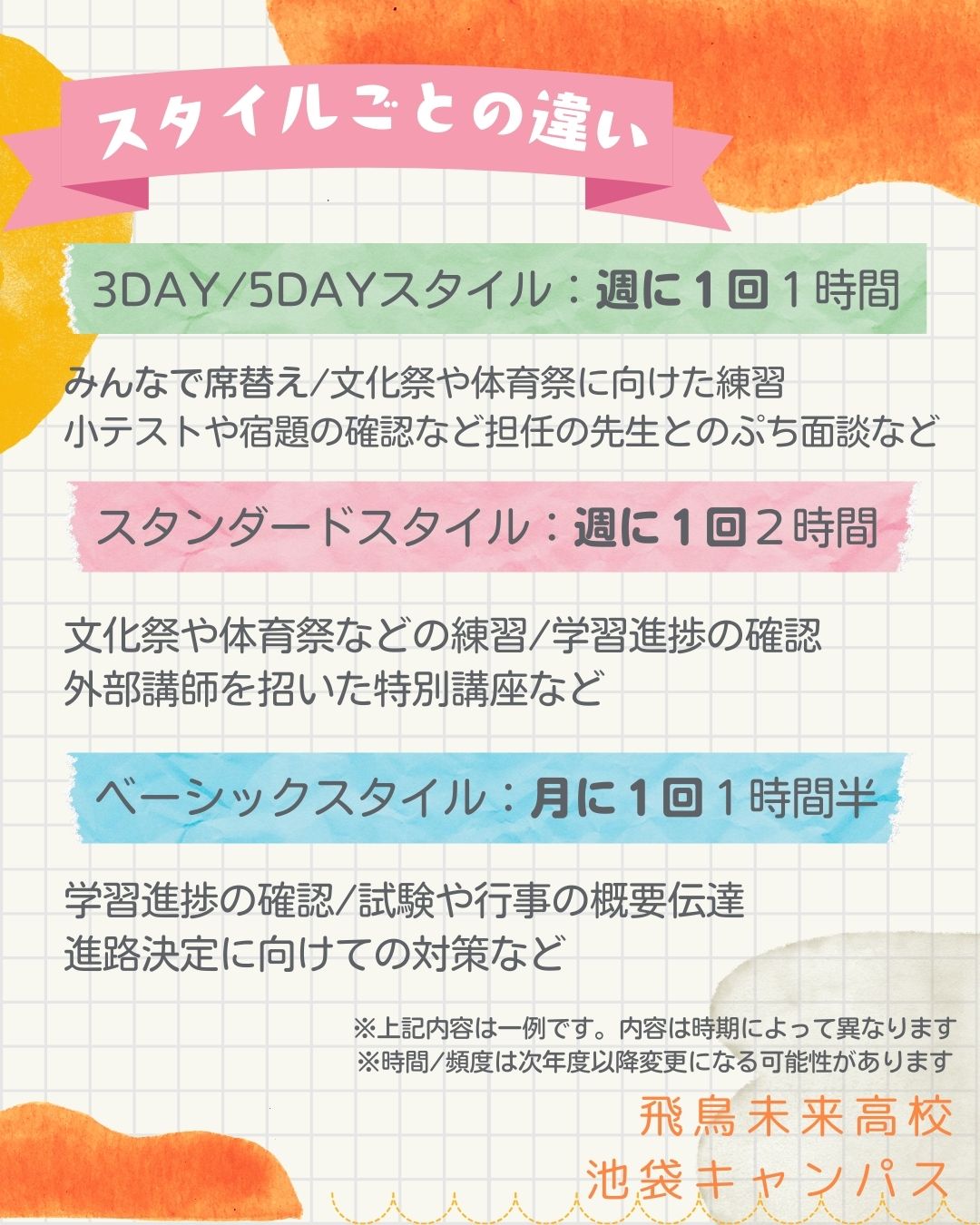 出願時に選択するスタイル(学校の通い方)によってホームルームの頻度や内容は異なります✨