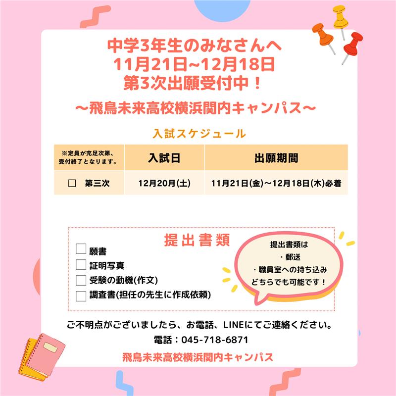 第三次出願期間:11月21日(金)〜12月18日(木)【必着】