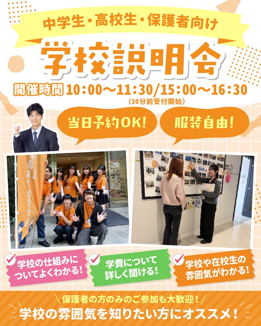 初めてご来校いただく方へ ご都合に合わせて説明会・オープンキャンパスの参加日を選ぶことが可能になります💖