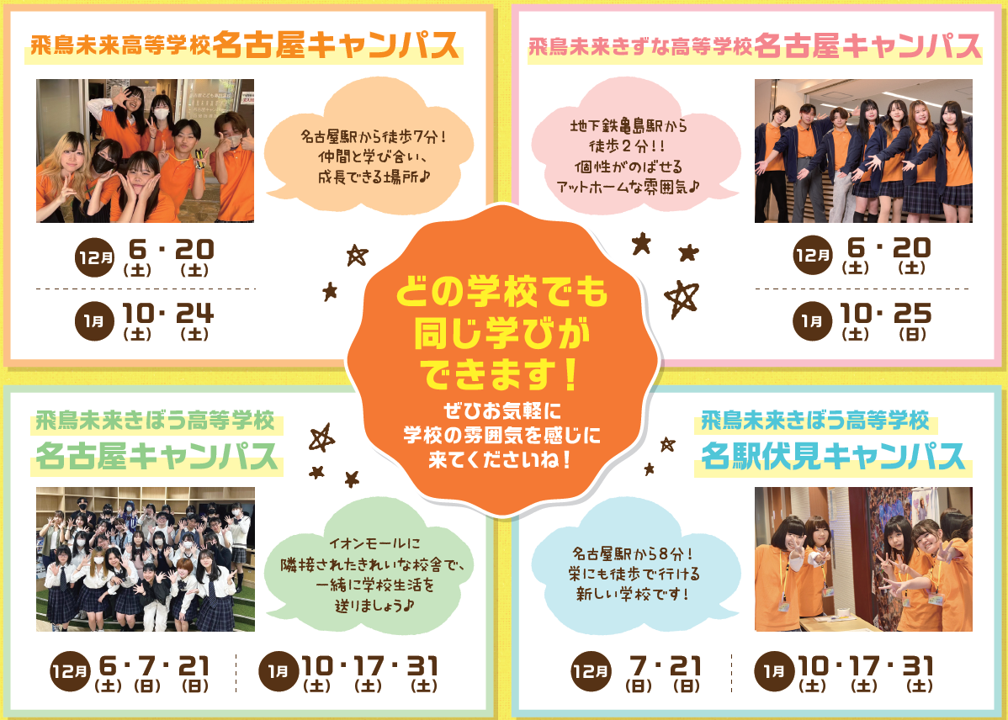 飛鳥未来高校には名古屋地区に姉妹校が3キャンパスございます👏
