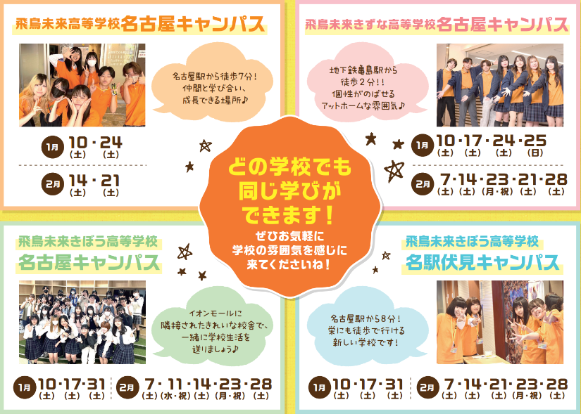 飛鳥未来高校には名古屋地区に姉妹校が3キャンパスございます👏