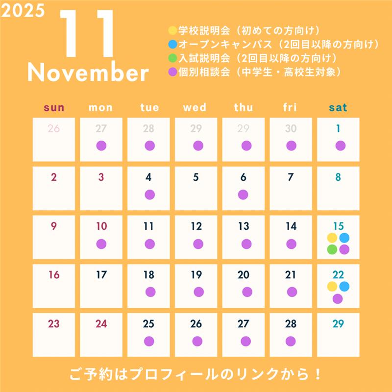 11月も学校説明会、オープンキャンパス、入試説明会などのイベントを実施します👏