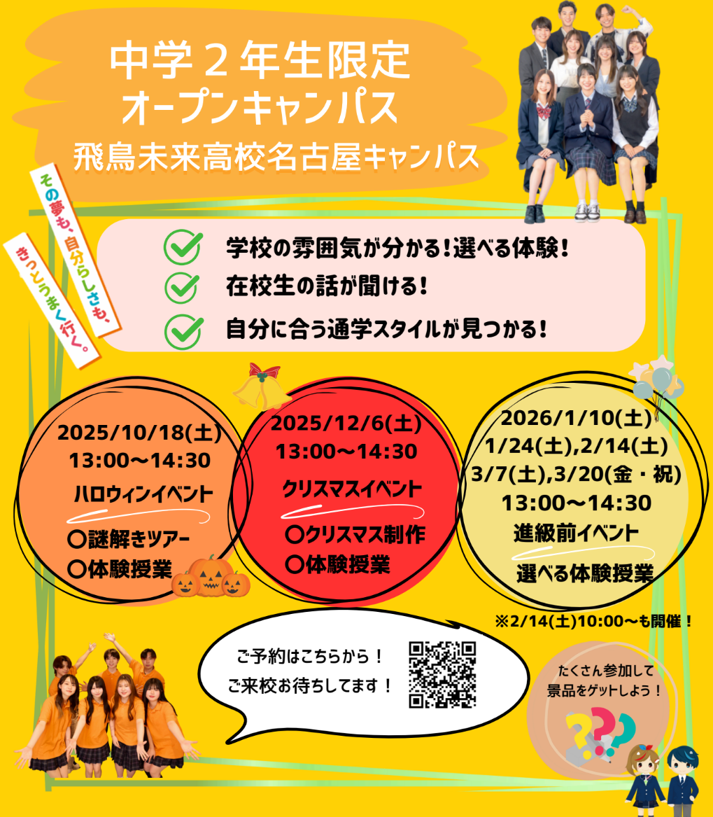 飛鳥未来高校が気になっている中学2年生向けのイベントです!