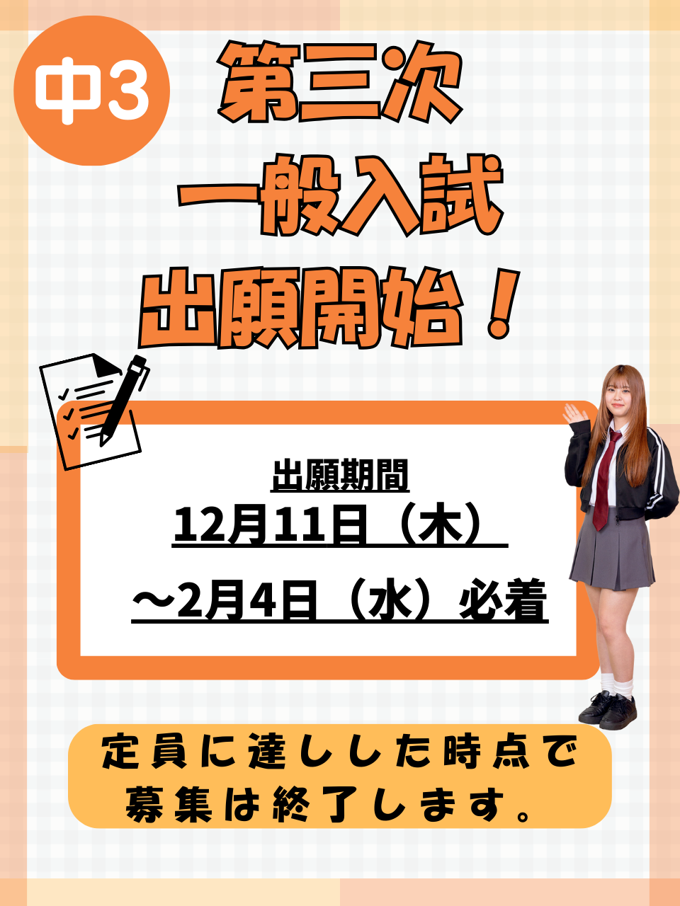 【☆中学3年生 第三次一般入試の願書受付中!☆】今年度最後の入試です!!