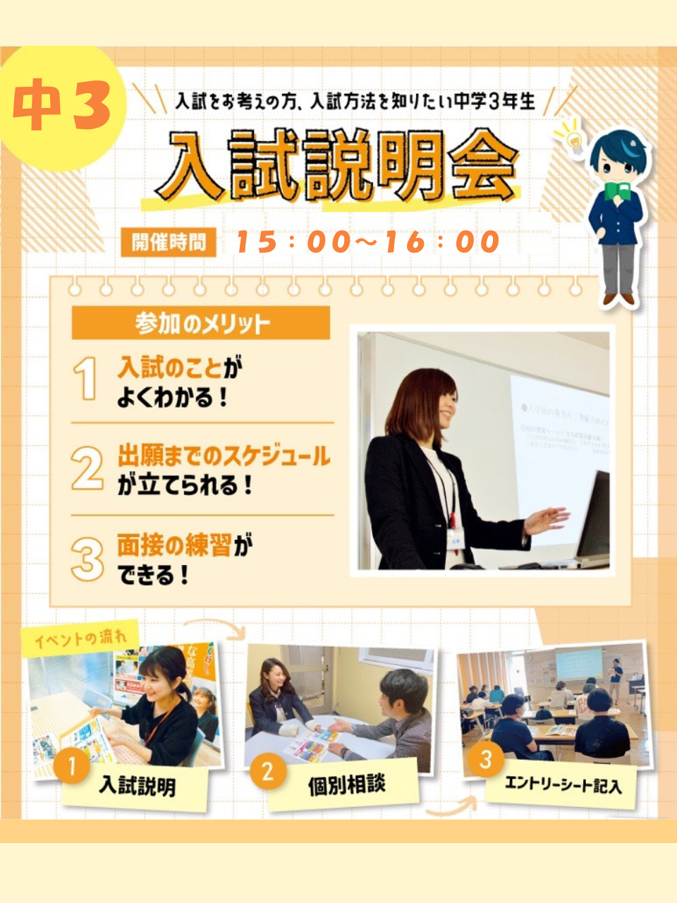 定員に達した時点で、予定していた入試を行わない可能性がございます。