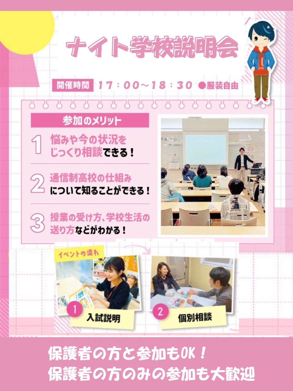 学校探し中の方、ご入学を希望される方、今の学校生活に不安がある方、ぜひお気軽にご参加ください♪