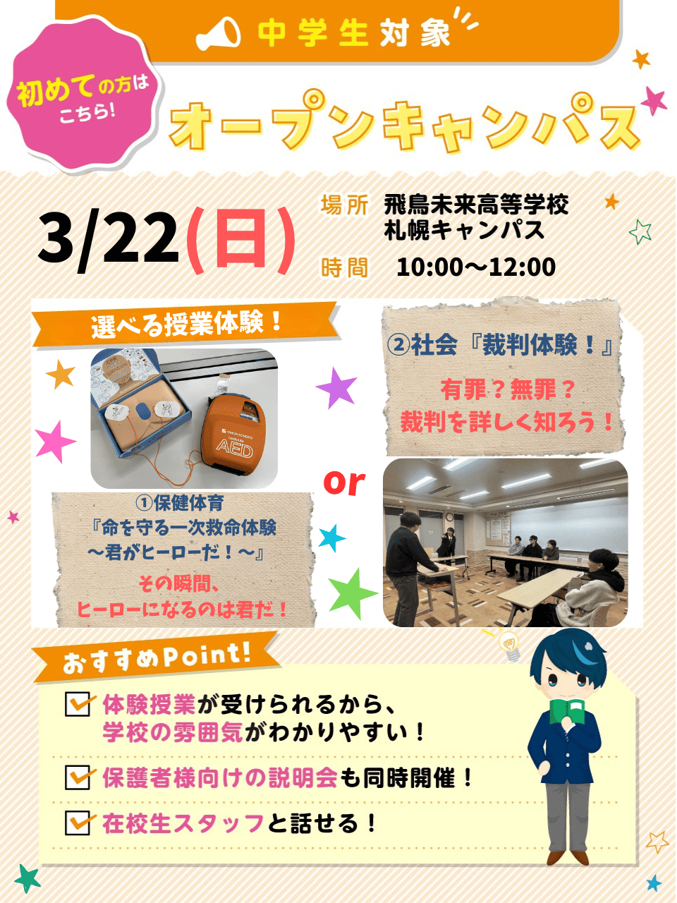 ★中学生・保護者対象★【初めての方におすすめ】3月22日(日)オープンキャンパス・学校説明会・休日個別相談会