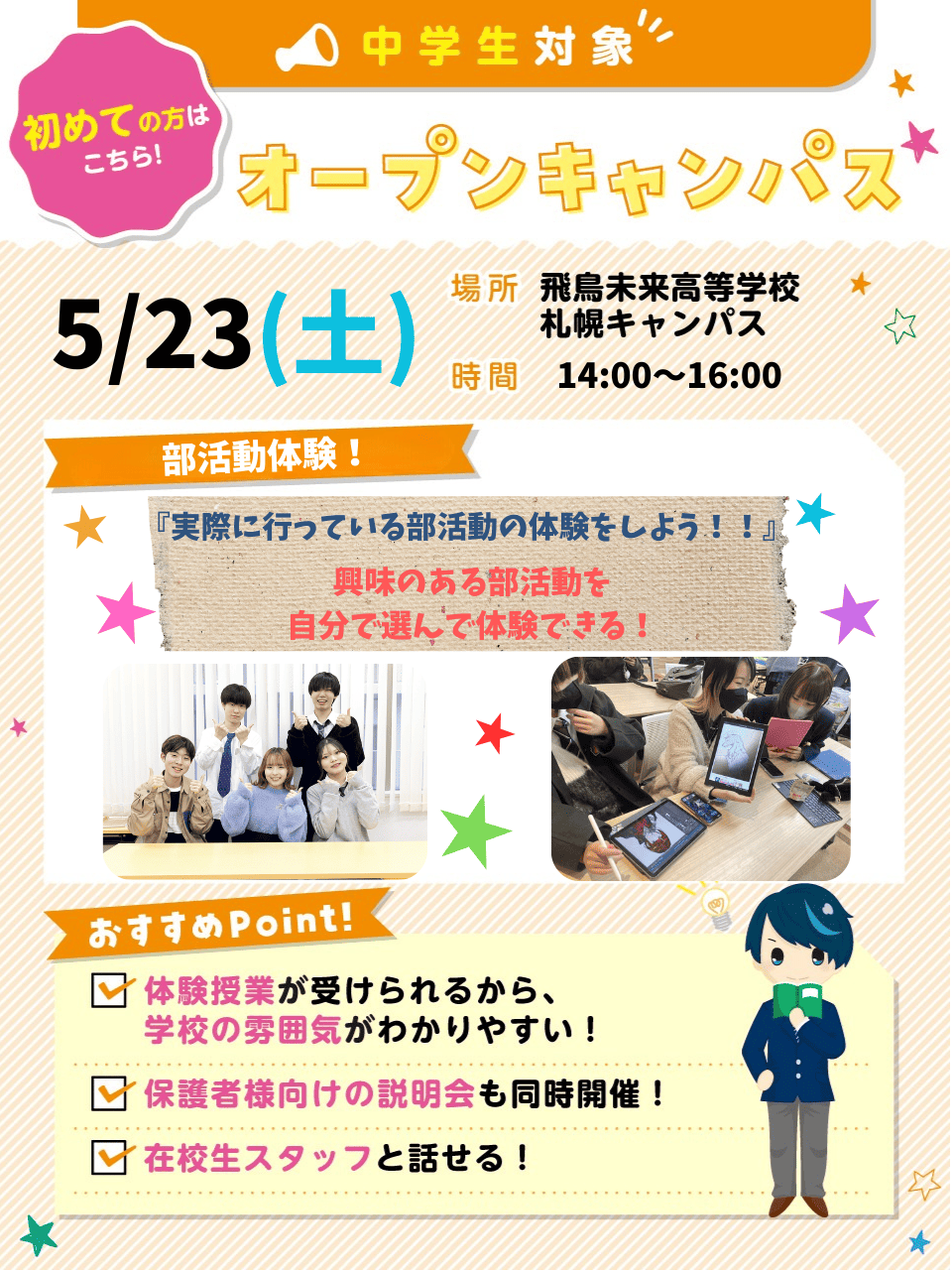 ★中学生・保護者対象★【初めての方におすすめ】5月23日(土)オープンキャンパス・学校説明会・休日個別相談会