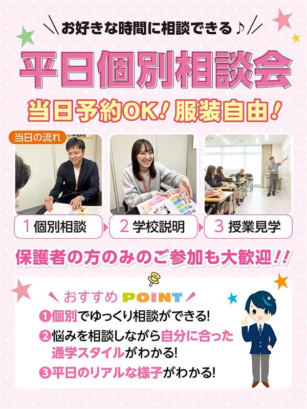 飛鳥未来高等学校仙台キャンパスでは・・・平日個別相談会を開催しています!!!