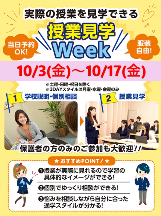 【中学生・高校生・保護者歓迎!】授業見学Week☆彡