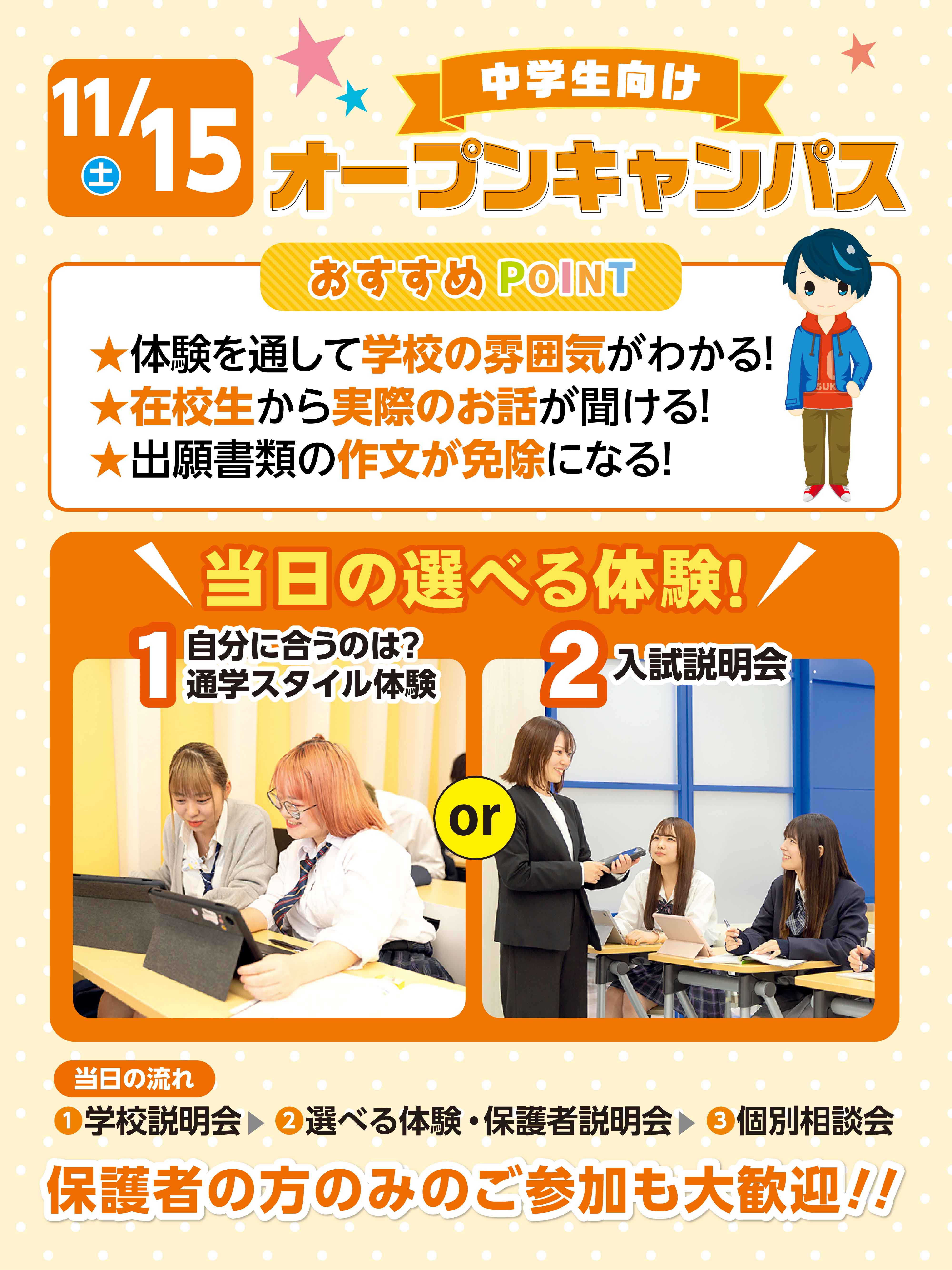 ★中学校3年生対象の学校をリアルに体験できるイベントになります!