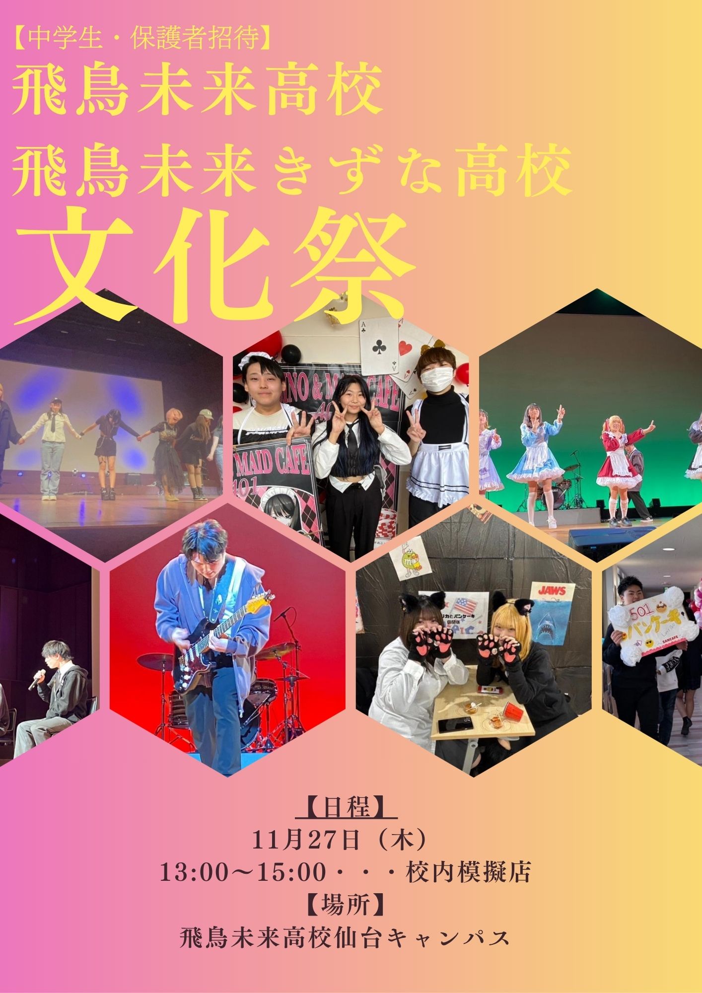 今年度の文化祭は、姉妹校の飛鳥未来きずな高校仙台キャンパスと合同で開催します!
