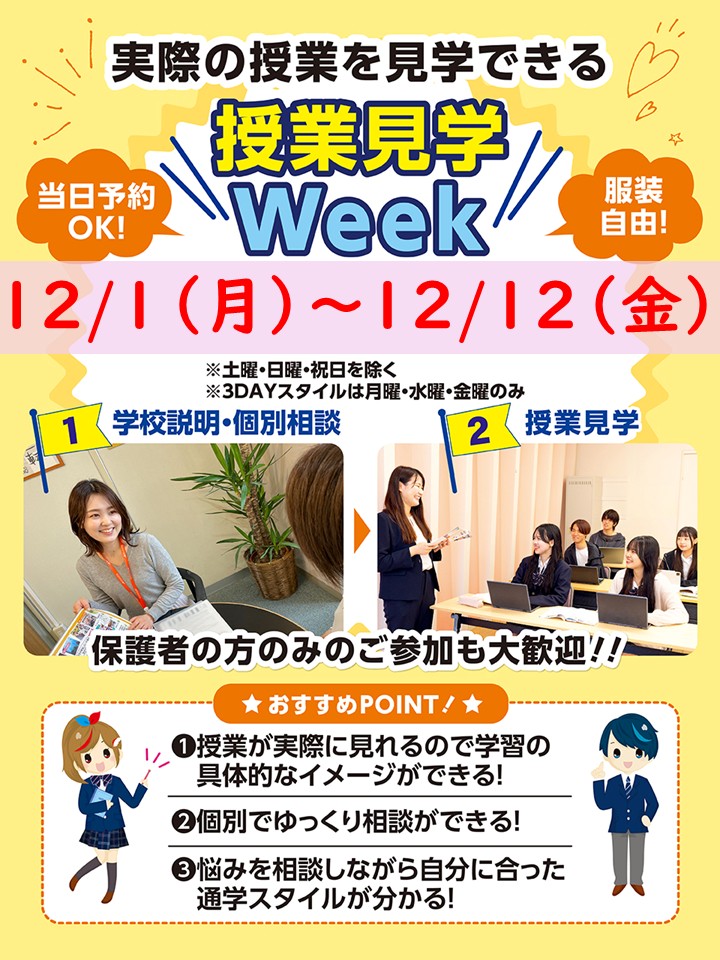【中学生・高校生・保護者歓迎!】授業見学Week☆彡