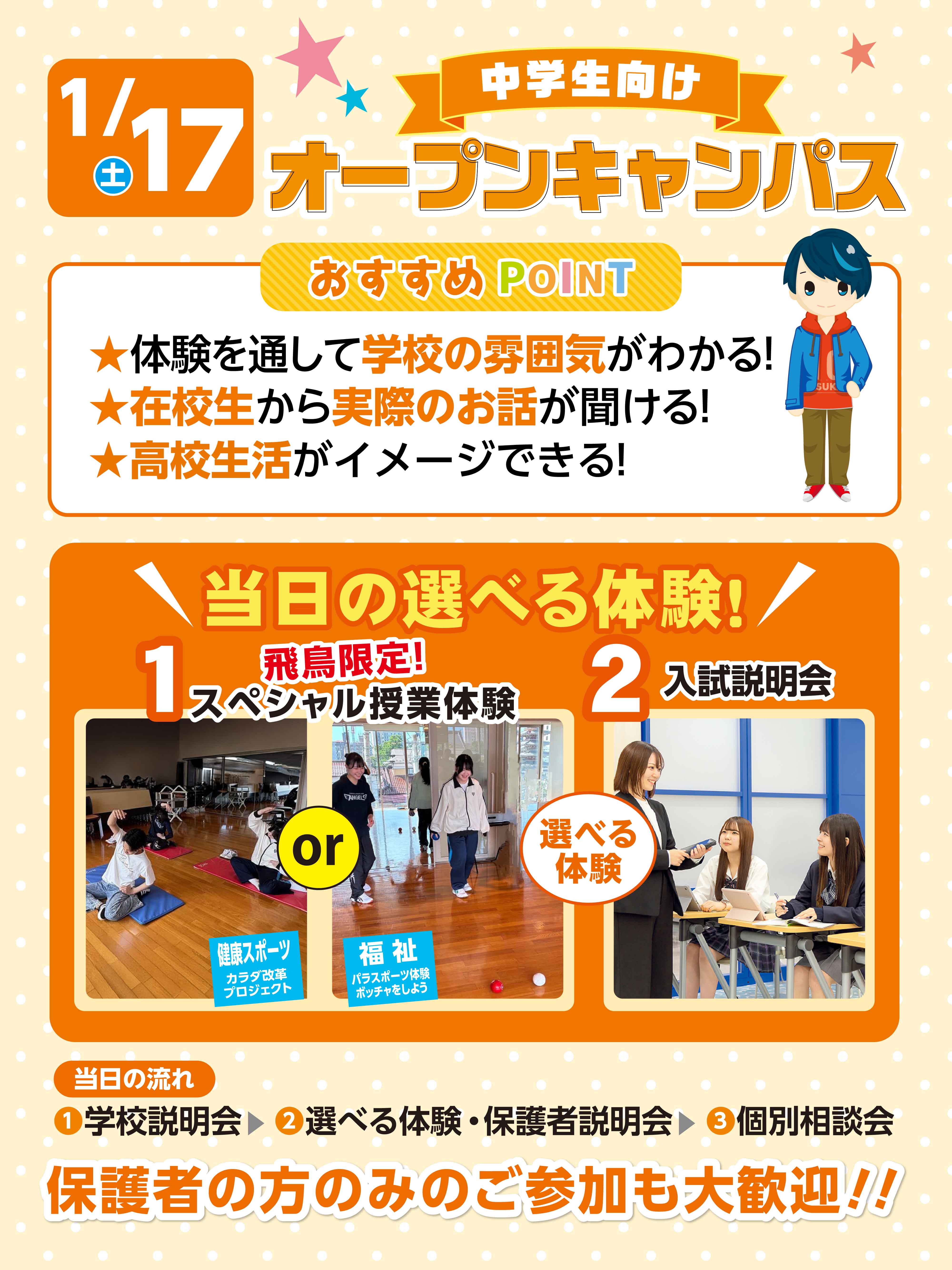 ①飛鳥限定!スペシャル授業(健康スポーツ・福祉)
