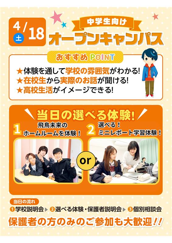 ★中学校3年生対象の学校をリアルに体験できるイベントになります!