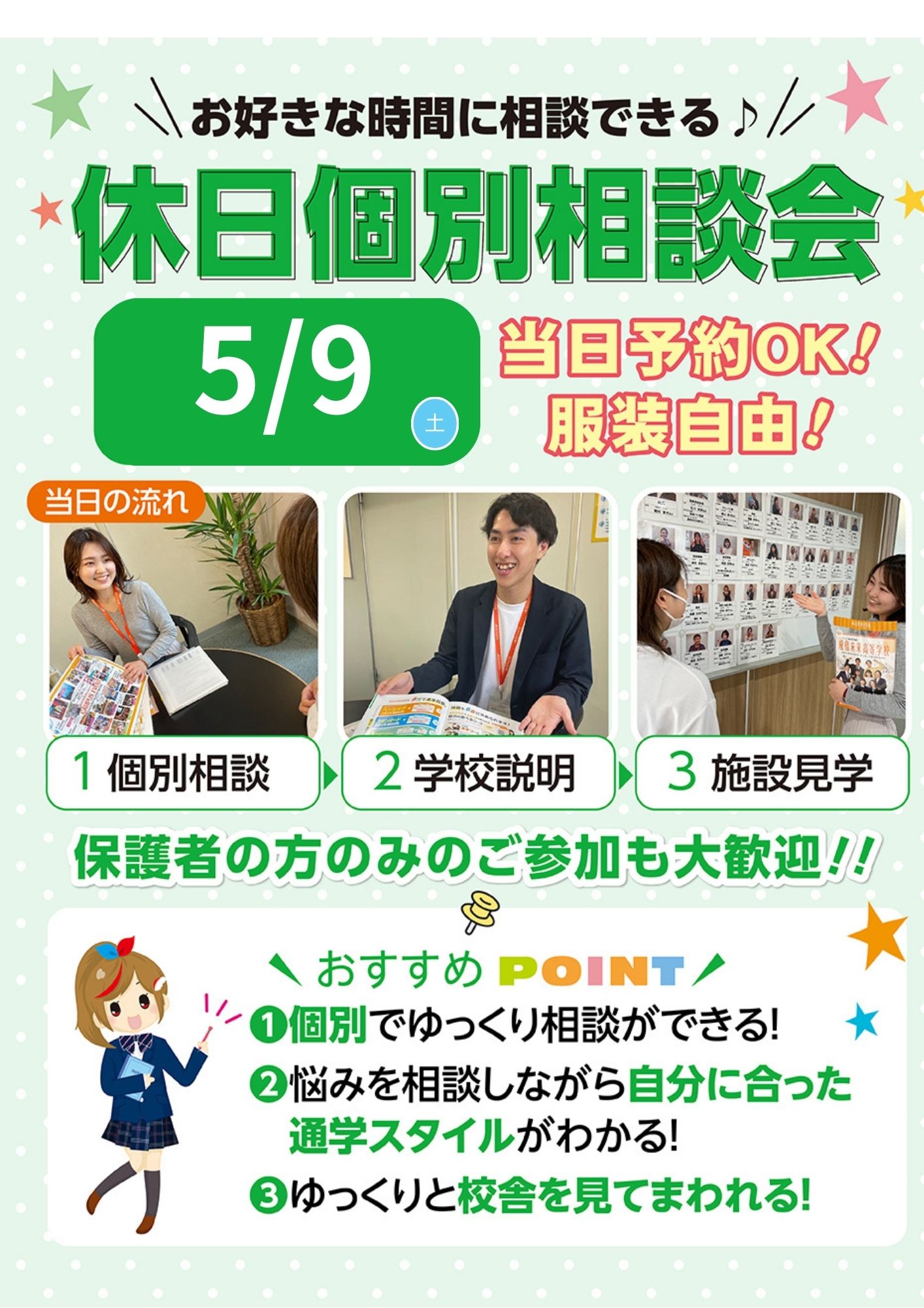 優しい先生、頼もしい在校生スタッフが皆さんをお待ちしています!