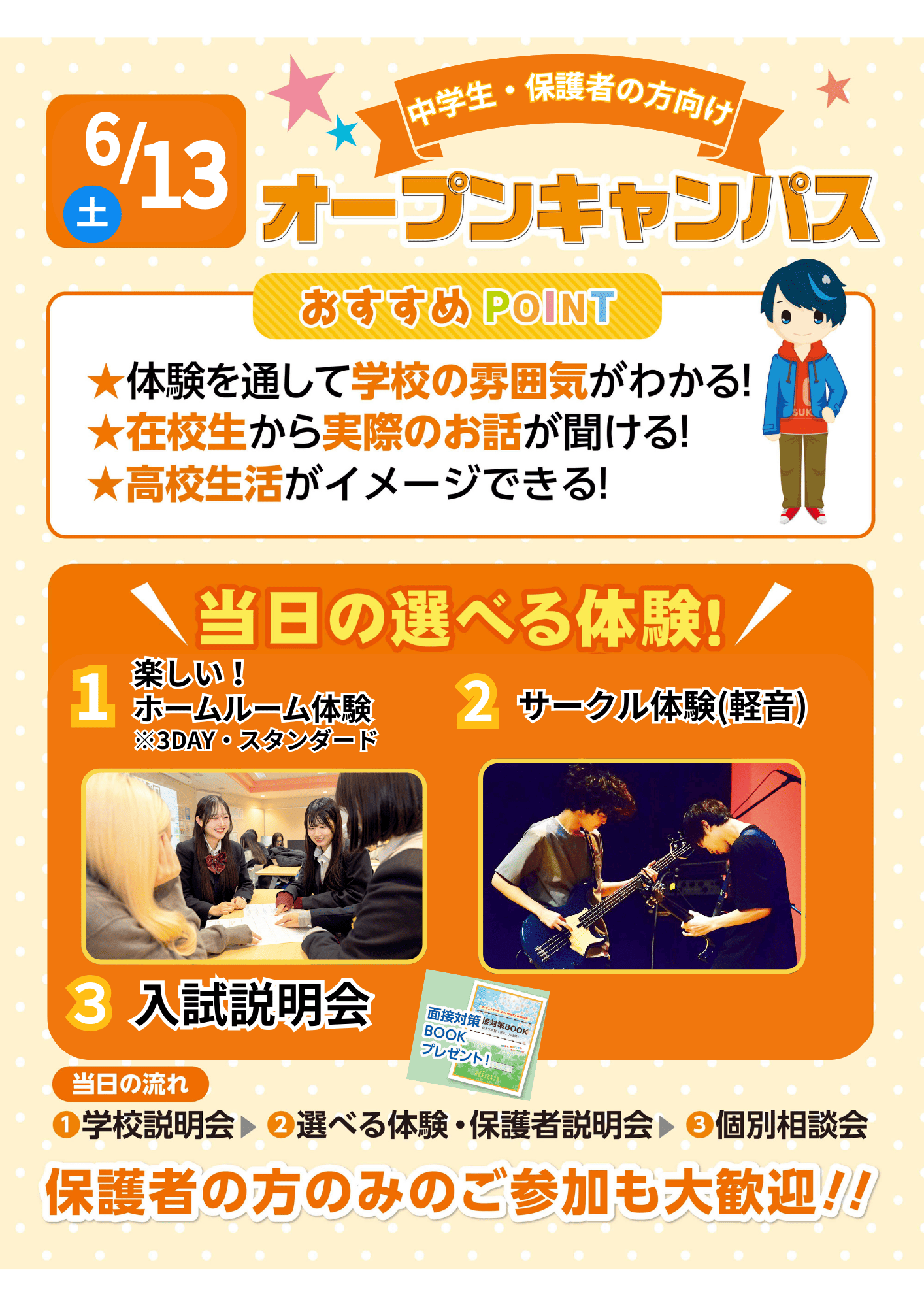 ★中学校3年生対象の学校をリアルに体験できるイベントになります!