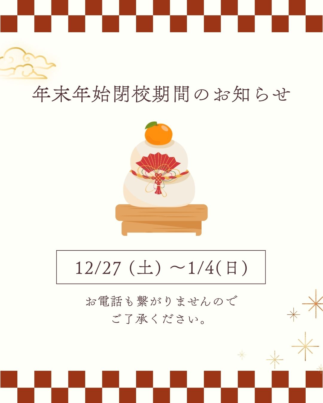 ⬇️閉校期間は以下の通りです⬇️