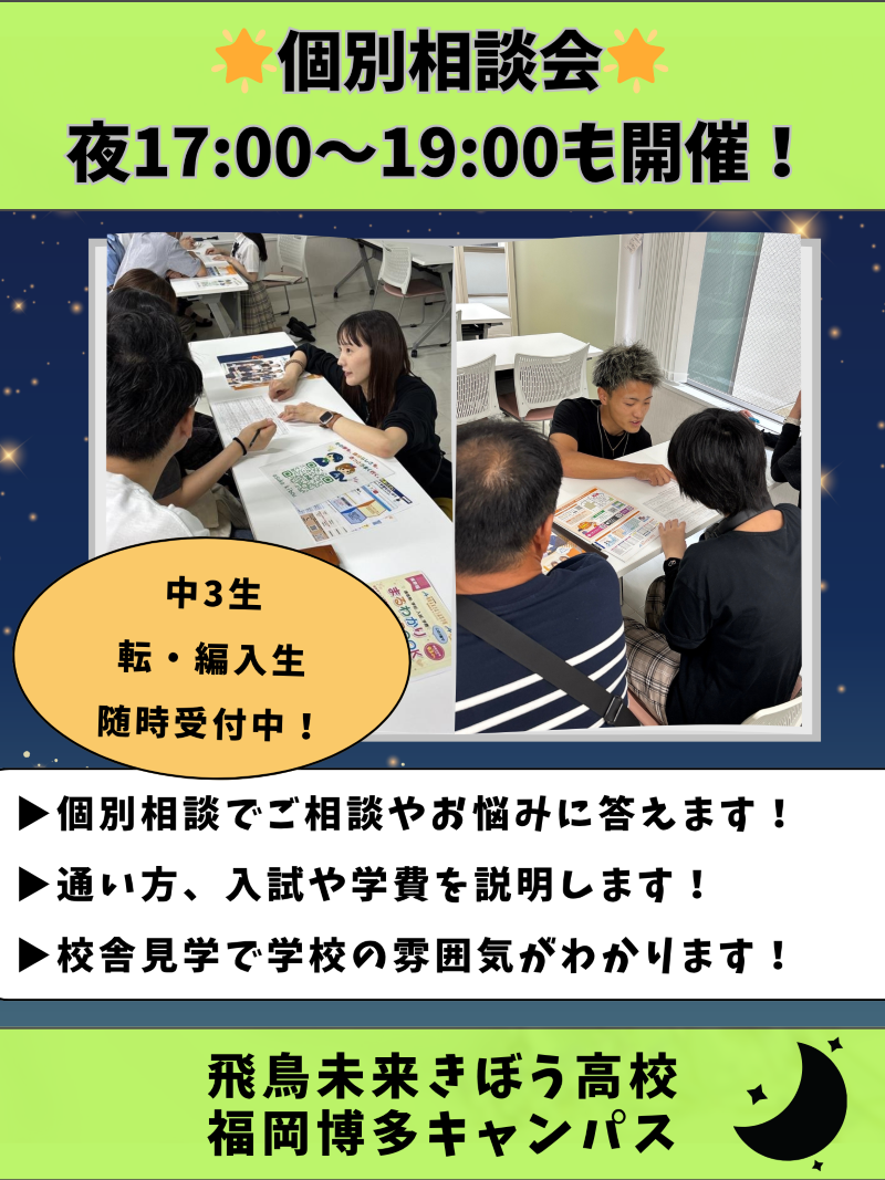 実は夜の時間帯(17:00~19:00)にも個別相談会を実施しております!