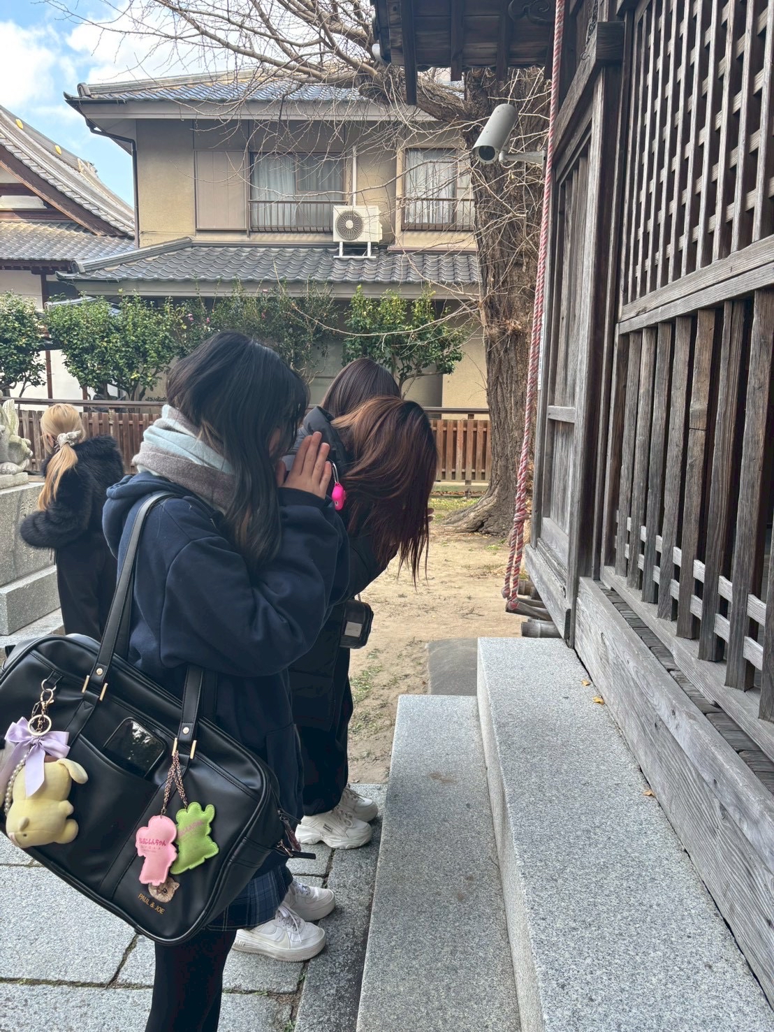 澄んだ空気の中、生徒たちはそれぞれの願いを込めてお参りしました。