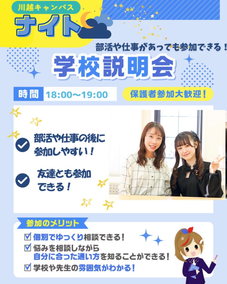 通学の不安や悩みを夕方からの個別相談でじっくり相談できます。
