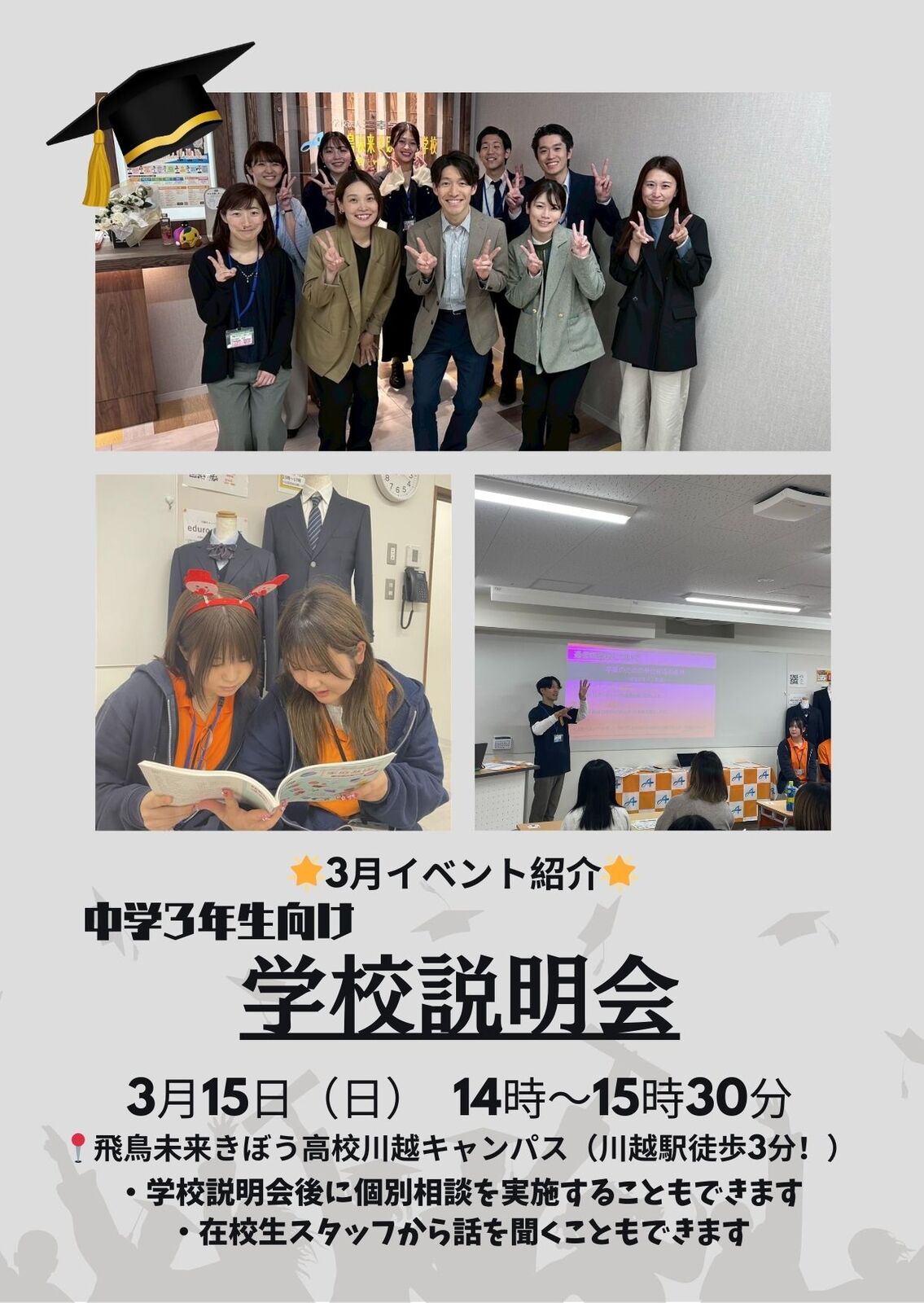 - ※学校説明会終了後、ご希望の方は個別相談も可能です。(30分程度)