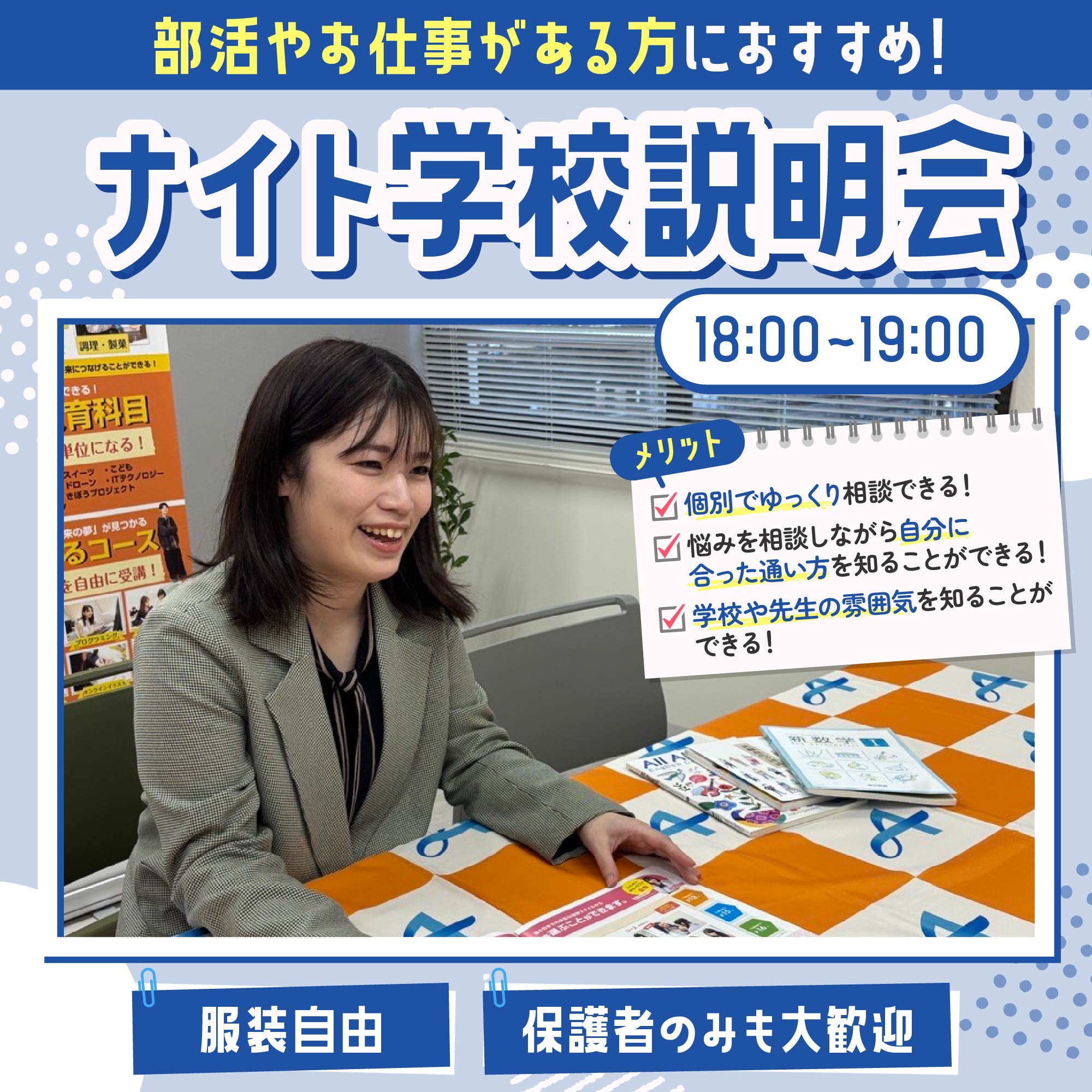 - 服装自由:私服でも制服でもどちらでもOK❕