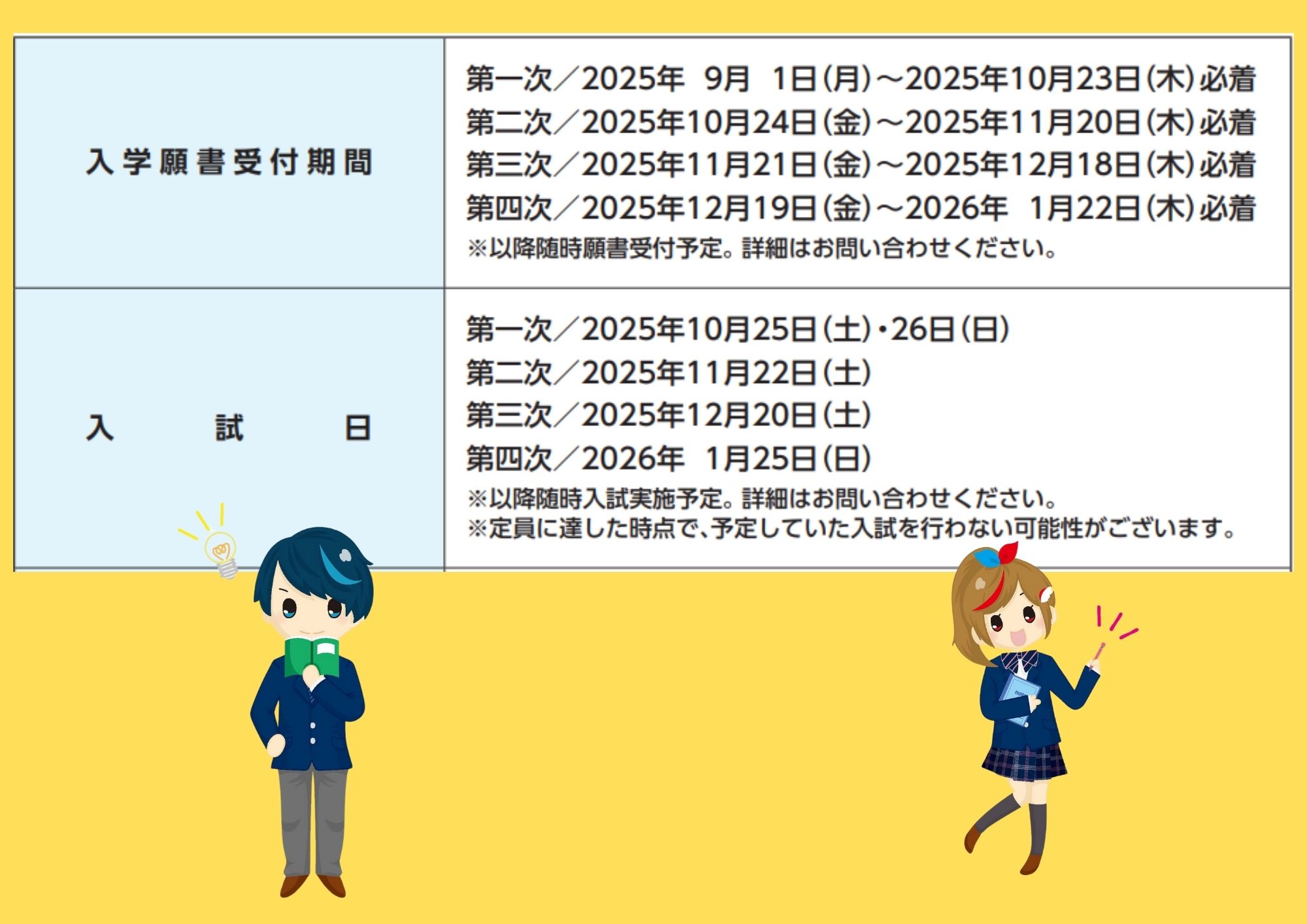 1次入試の出願締め切りは10/23(木)