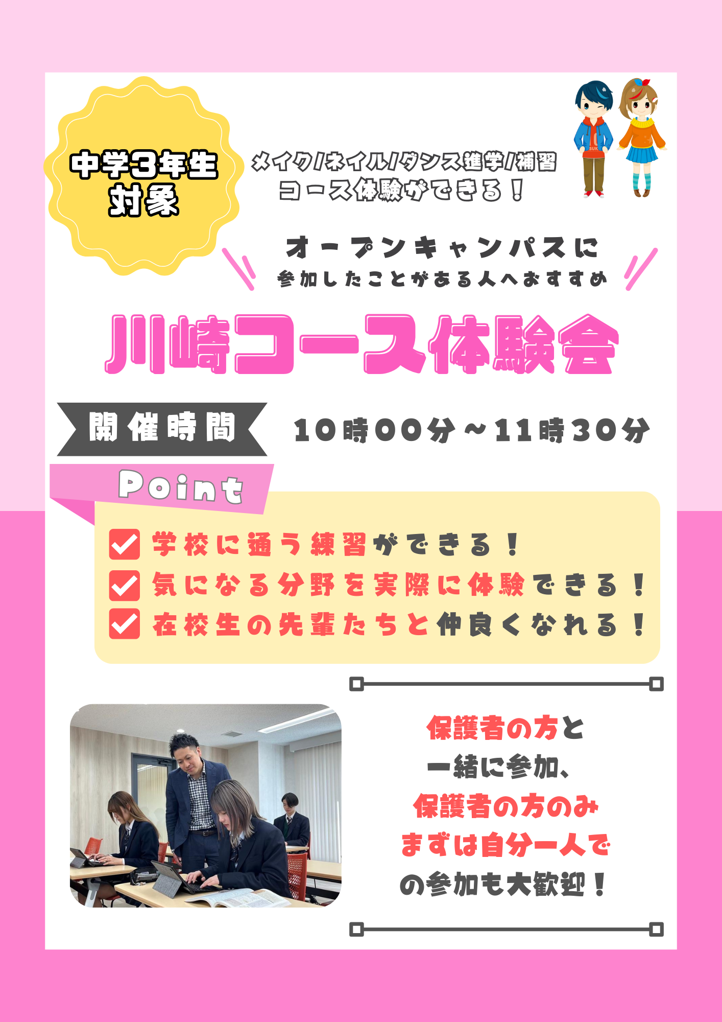 ≪川崎キャンパス初来校の方≫13:00~15:00