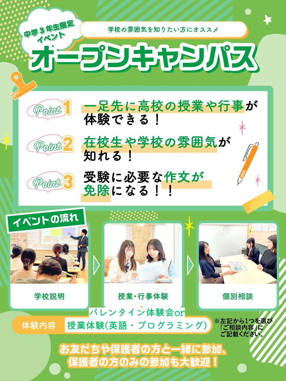 学校の雰囲気がわかるオープンキャンパス🏫や、