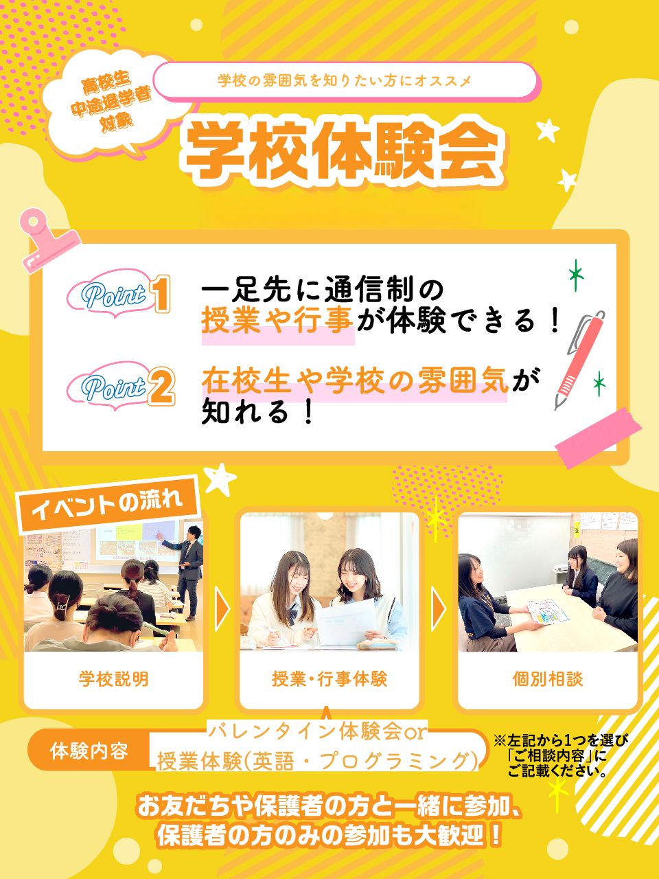 ♦個別で通信制高校の登校方法・単位の取得方法、勉強方法等について説明します