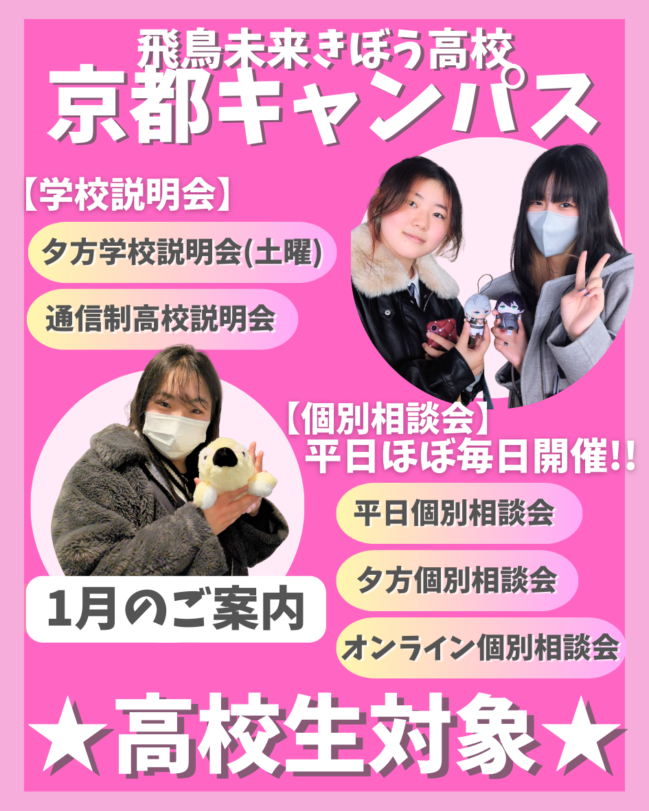 京都キャンパスでは、1月24日(土)に通信制高校説明会&学校説明会を行います♪