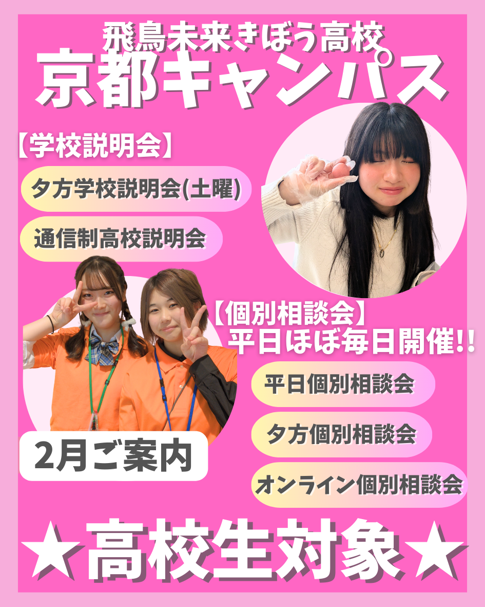 京都キャンパスでは、2月21日(土)に通信制高校説明会&学校説明会を行います♪