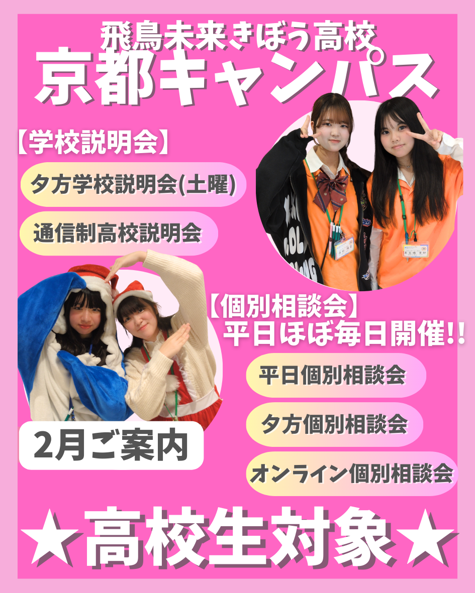 京都キャンパスでは、3月14日(土)に通信制高校説明会&学校説明会を行います♪