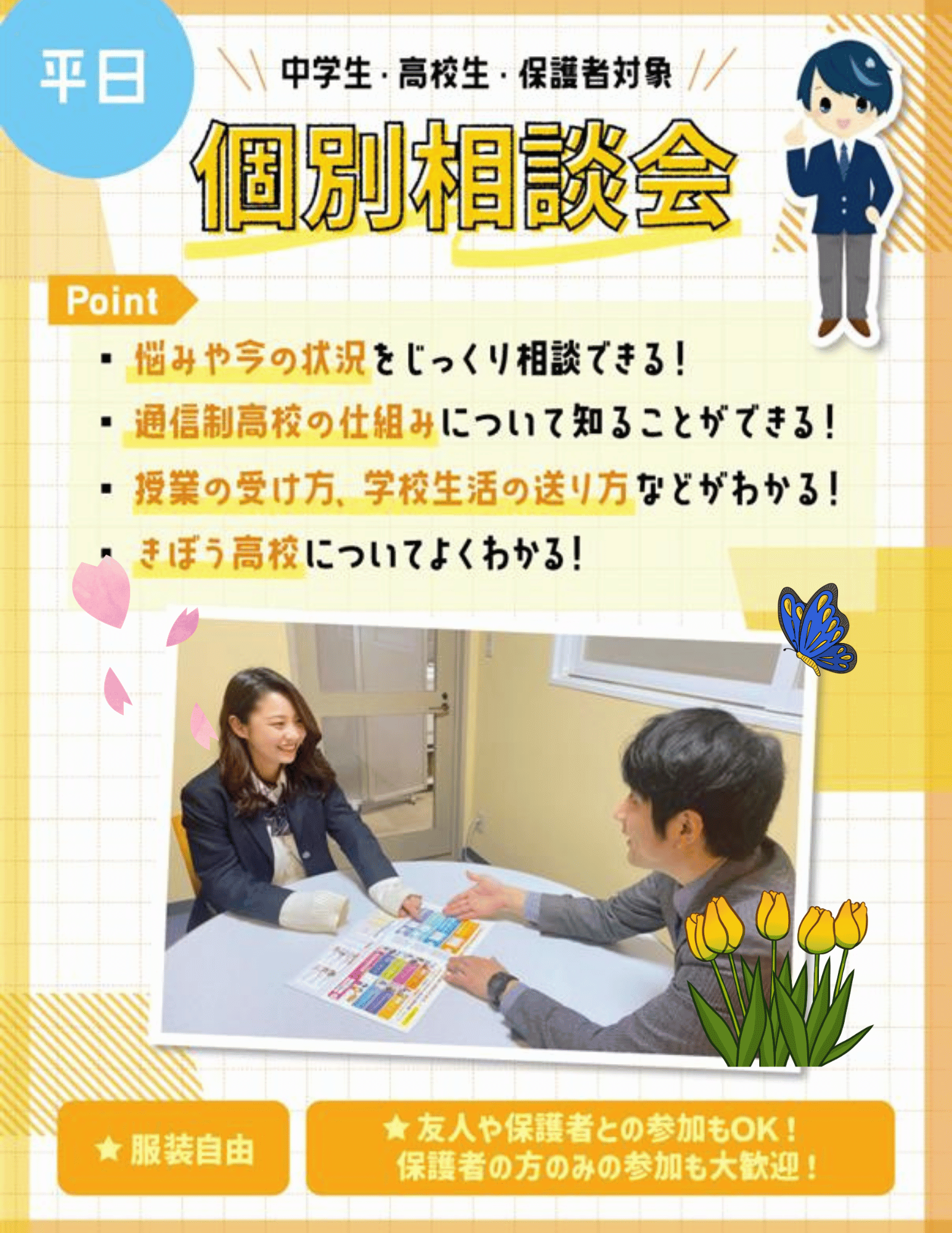 夕方からの個別相談ですので、放課後やお仕事終わりにぴったり!
