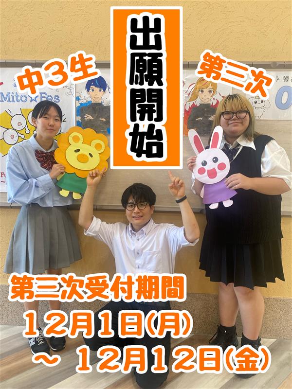【中学3年生の皆さんへ】第三次 出願開始です♪