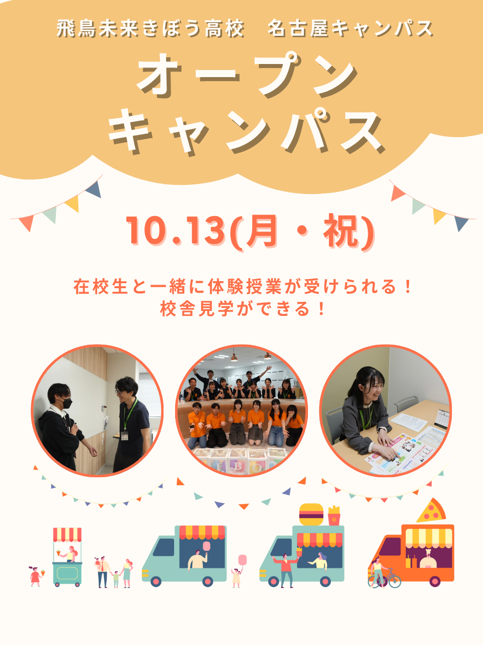 飛鳥未来きぼう高等学校(名古屋キャンパス)は自分らしく、夢に向かって羽ばたく力を身につける事が出来る単位制・通信制の高校です。