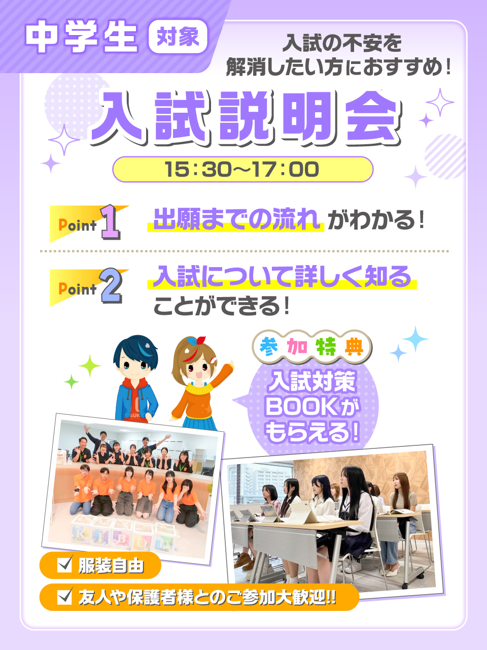 出願方法から入試の内容まで、丁寧に説明させていただきます!