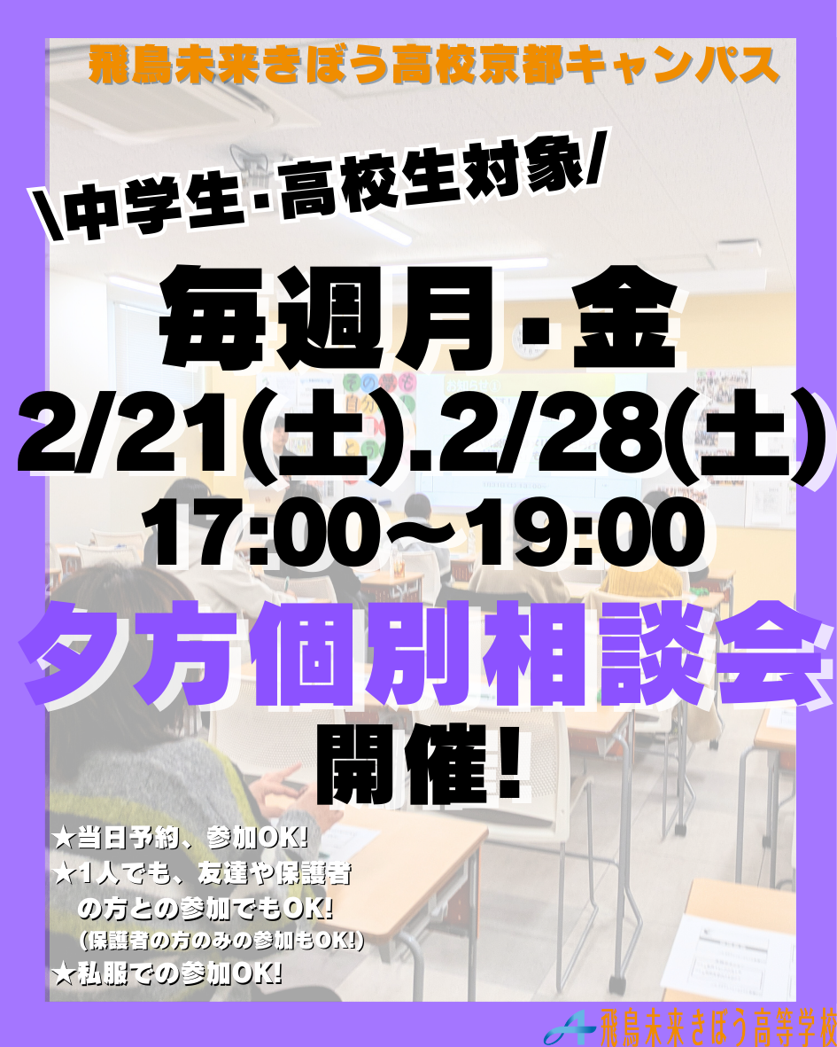 【中学生・高校生対象】🌙夕方個別相談会 🌙