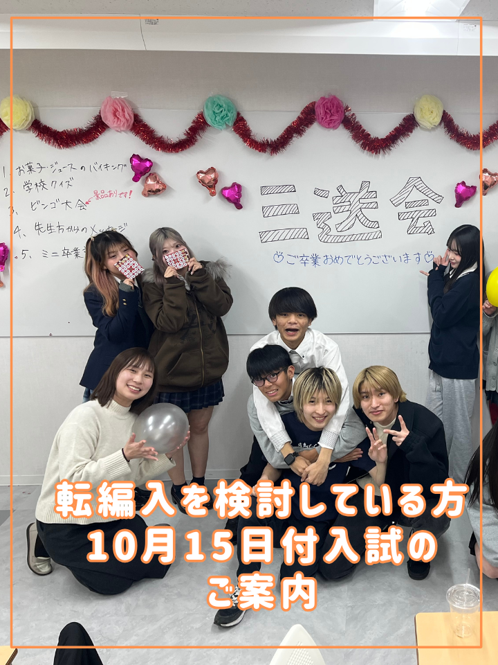 転編入学を希望している方へ★10月15日付け入学ついてご案内!