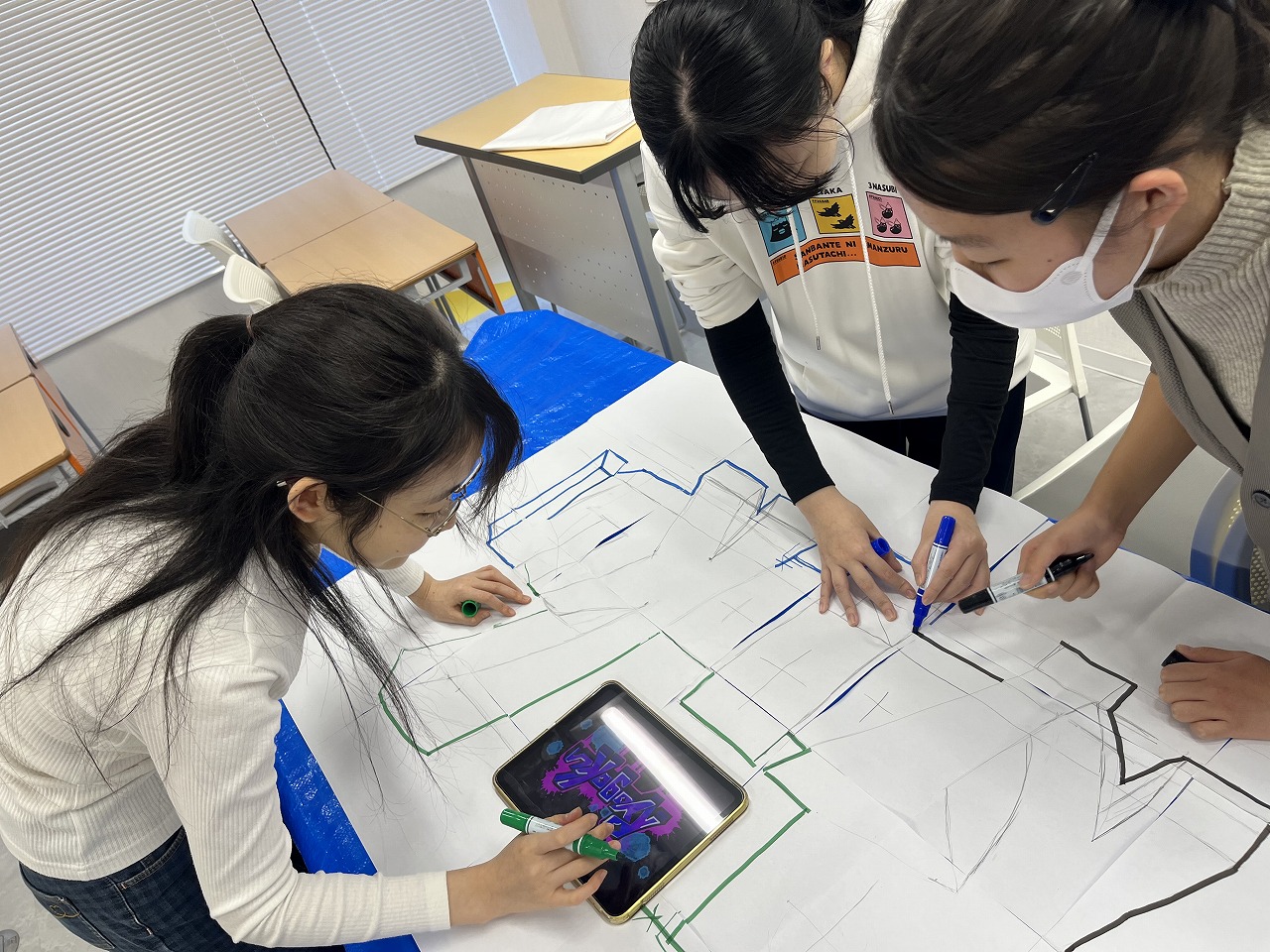 サポートスタッフを中心に、キャンパス全体で応援うちわ・横断幕作成を行っています!