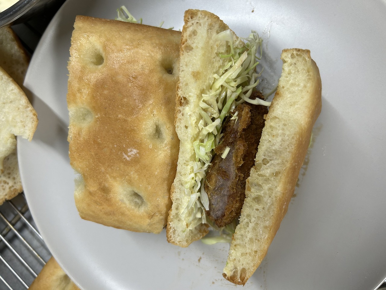 こちらはビフカツサンドを作りました!フォカッチャも手作りです🍞