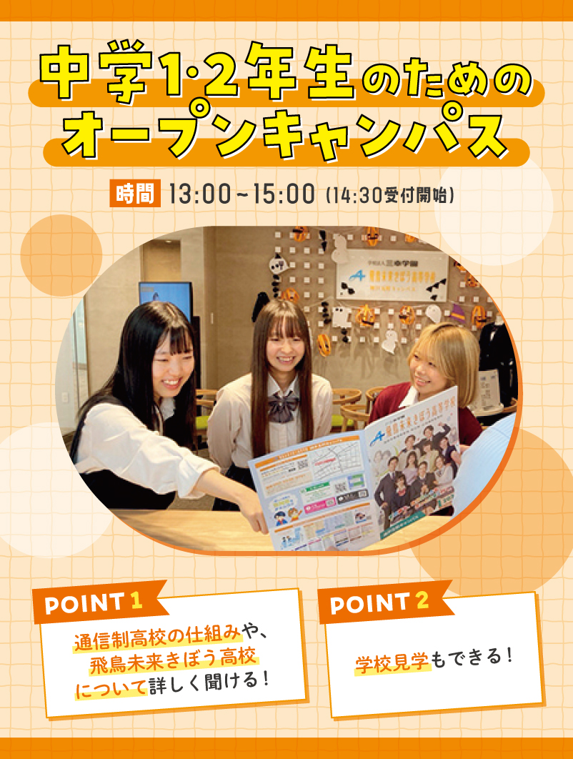 『飛鳥未来きぼう高校なら授業ついていけるかも!』『堺キャンパスなら卒業もできそう!』
