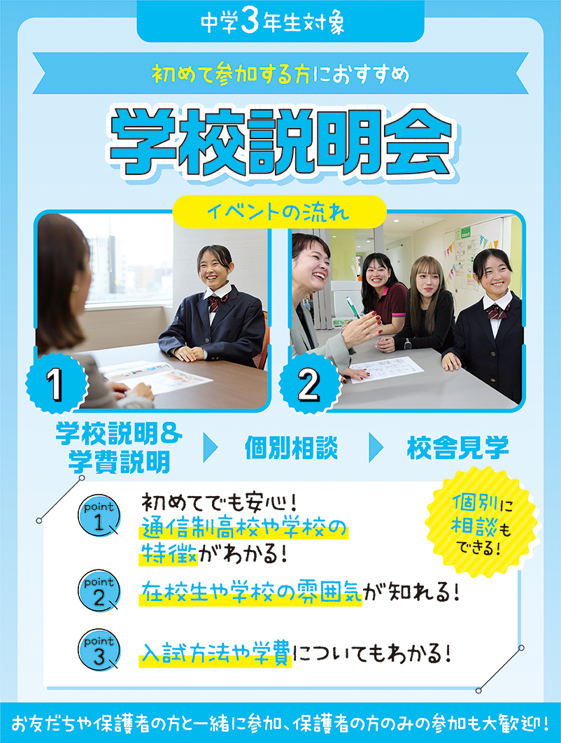 ①通信制高校の仕組みや堺キャンパスについて詳しく知ることができる!